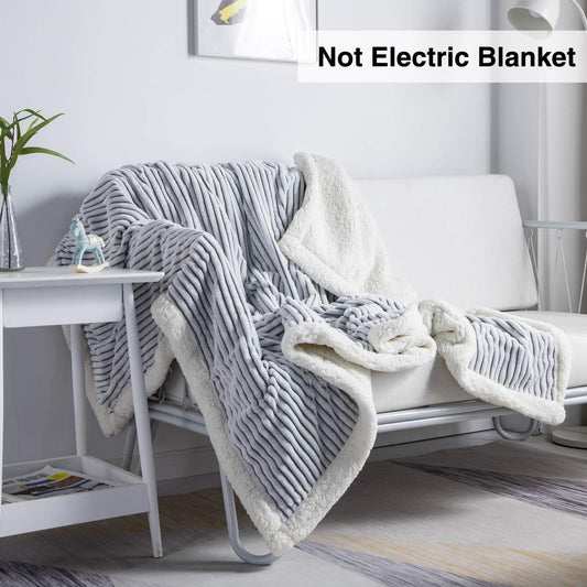 Sherpa Blanket Fleece Throw – 51X63, Grey & White – Soft, Plush, Fluffy, Fuzzy, Warm, Cozy, Thick – Perfect for Couch, Bed, Sofa, Chair - Christmas Blanket Gift for Winter